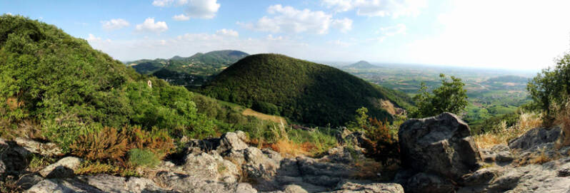 Beschreibung: Dies ist ein relativ kurzer Rundweg mit geringem Höhenunterschied, ideal für kleine Kinder. Der Weg schlängelt sich durch einen Mischwald und führt zum Gipfel des Monte Ceva, von dem aus man einen schönen Panoramablick auf die Euganeischen Hügel genießt.